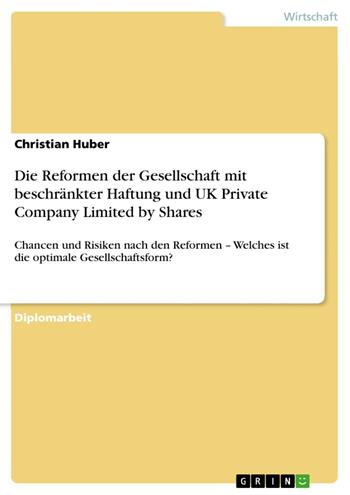 Diplomarbeit aus dem Jahr 2008 im Fachbereich BWL - Recht, Note: 2,3, Hochschule Pforzheim, Sprache: Deutsch, Abstract: Mit der Festsetzung der Art. 43 ff. EGV und den europäischen Grundsätzen der Freizügigkeit und der freien Dienstleistungs- und Kapitalverkehre folgte zwangsläufig auch eine Anpassung im deutschen Gesellschaftsrecht. Die Anpassung erfolgte nicht durch den Gesetzgeber, sondern durch drei grundsätzliche Urteile des EuGH. Mit den Urteilen erhielten alle im europäischen Ausland vertretenen Gesellschaftstypen ebenfalls und uneingeschränkt Einzug in Deutschland. Dem Unternehmensgründer in Deutschland stehen damit nun nicht mehr nur die deutschen Formen der Personen-, Kapitalgesellschaften und all ihrer Mischformen zu, sondern zudem auch alle im europäischen Ausland existierenden. Doch genau hier liegt die Schwierigkeit. Die Vielfalt ist kaum zu überblicken. Darüber hinaus modifizieren die einzelnen Mitgliedsstaaten kontinuierlich ihr Recht – ob dies durch Rechtsprechung oder durch Gesetze geschieht, spielt für den Gründer keine Rolle. Beides ist maßgeblich für die Wahl einer Unternehmensform. Ein Paradebeispiel, welches diese Situation verdeutlicht, sind die beiden Kapitalgesellschaften: Die deutsche Gesellschaft mit beschränkter Haftung und die UK Private Company Limited by Shares. Auch wenn die Zahl der Ltd. in Deutschland noch überschaubar ist und im Vergleich zur GmbH kaum ins Gewicht fällt, so hat die Zahl der neu gegründete Ltd. stark zugenommen.Insbesondere die fehlende hohe Kapitaleinlage, wie sie bei der GmbH erfolgen muss, wird als Hauptargument für die Ltd. und gegen die GmbH propagiert. Der deutsche Gesetzgeber hat nun eine Reform angekündigt und mit dem MoMiG die Anpassung der GmbH an die Ltd. auf den Weg gebracht. Der Entwurf soll damit unter Anderem für deutsche Unternehmer den Weg ins englische Gesellschaftsrecht unnötig machen. Auch in England wurden Reformen auf den Weg gebracht, die Veränderungen im Bereich der Private Company Limited by Shares nach sich zogen. Mit dieser Arbeit soll beleuchtet werden, in wie weit die Änderungen an beiden Gesellschaftstypen durch die Gesetzgeber maßgeblich für eine zukünftige Entscheidung für oder gegen die eine oder andere Gesellschaftsform sind. Wie sehen die Reformen aus? Welche Änderungen bringen sie für bestehende und zukünftige Unternehmen? Entstehen durch die Reformen neue Probleme und Risiken oder bieten sie Chancen?
