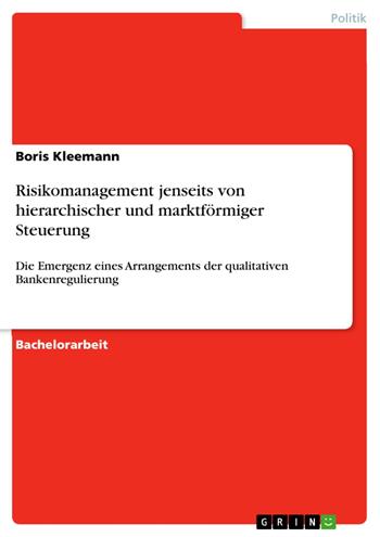Bachelorarbeit aus dem Jahr 2008 im Fachbereich Politik - Thema: Globalisierung, pol. Ökonomie, Note: 1,0, Universität Bielefeld (Fakultät für Soziologie), Sprache: Deutsch, Abstract: Eine Arbeit, die nach Steuerungsformen jenseits der klassischen Dichotomie von Markt und Staat sucht, muss sich, so die hier vertretene Auffassung, explizit mit der Frage nach der emergenten Qualität der jeweiligen Steuerungsprobleme auseinandersetzen. Wenn nachvollzogen werden kann, dass sich diese Problemlagen aus komplexen Wechselwirkungen heraus ergeben, die sich der Beobachtung mittels eines symmetrischen Schemas von Ursache und Wirkung entziehen, ist zu vermuten, dass Steuerungsformen, die eben an diesem Schema der Kausalität ansetzten, sich als wenig adäquat erweisen. Mit dem Bankensektor ist ein Bezugsrahmen gefunden, der, aufgrund seines hohen Grades an globaler Vernetzung und Wissensbasierung komplexe Risikolagen beobachten lässt, die nicht durch eine bloße Aggregation von Einzelrisiken behandelt werden können. Im ersten Teil der vorliegenden Arbeit wird dieser Problemkontext mittels der Unterscheidung von räumlicher und kognitiver Entgrenzung erschlossen. Auf diese Weise kann eine Dynamisierung des Problemzusammenhangs über unberechenbare Selbstanpassungen der wirtschaftlichen und politischen Akteure an sich verändernde Bedingungen festgestellt werden. In einem zweiten Teil werden zunächst die Schwierigkeiten einer staatlichen Regulierung dieser qualitativ neuen Risikolagen exemplarisch auf die fehlende Berücksichtigung der wirtschaftlichen Innovationslogik innerhalb des Basler Akkords von 1988 bezogen, bevor die Empfehlungen der Group of Thirty zur wirtschaftlichen Selbststeuerung im Hinblick auf den Umgang mit derivativen Finanzinstrumenten, für die Etablierung eines gemeinsamen privat/öffentlichen Risikoverständnisses zwar gewürdigt, allerdings bezüglich der unzureichenden erwartungsstabilisierenden Effekte kritisiert werden. Im Anschluss an diese Überlegungen wird es dann möglich sein, die Mindestanforderungen an das Risikomanagement (MaRisk) als Programm der Relationierung von Innovations- und Folgenperspektiven zu beschreiben, welches gegenüber klassischen Formen der direktiven Verhaltenssteuerung in seiner erwartungsstabilisierenden Wirkung auf der Metaebene der Steuerung von Interaktionsbeziehungen ansetzt und auf diese Weise, im Gegensatz zu Modellen des residualen Laissez-Faire, Stopregeln der Optionsrealisierung einbaut. Die Politik wird somit zu einem emergenten, nicht mehr auf die Dichotomie von marktförmiger und hierarchischer Steuerung zurückzuführenden, Umgang mit unberechenbarer Ungewissheit befähigt.