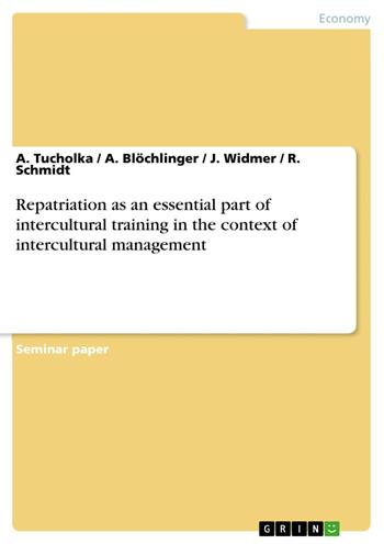 Seminar paper from the year 2007 in the subject Tourism - Miscellaneous, grade: 1,0, Stralsund University of Applied Sciences (FH Stralsund in Zusammenarbeit mit Université de Haute Alsace Mulhouse), language: English, abstract: “Diversity among employees in terms of cultural background leads to a richer, more sophisticated and more effective corporate environment.” World has changed completely and is still on a way of continuous transformation. Globalisation and international business are keywords nowadays. Introduction of Intercultural Management and International Human Resource Management has become inevitable the last few years. Companies have to think and act in an international way. In order to be successful it is necessary to enter new markets and to make international contacts. With intercultural well trained leaders a company gets competitive advantage: global leaders know the customs, culture, and etiquette of a foreign country and understand the nuances of business practices in those areas. Expatriation of executives or managers has become an important part of business life. But this mobility represents a real challenge for multinational organisations. In most cases the implementation and performance of Intercultural Management and International Human Resource Management cannot be made without difficulties. Expatriation failures, deterioration of performance, social or personal problems are just some examples of intercultural difficulties . One tool to solve or avoid such problems is Intercultural Training which consists of two parts: preparation for expatriates who are going to leave the home country and training for repatriates who come back to the home country after a foreign assignment. The following seminar paper focuses on the repatriation. This part of Intercultural Training is often badly treated and lots of companies do not pay attention to it. If they do, their programmes are often incomplete although satisfying reintegration is a key factor for success or failure of the foreign assignment . In a first theoretical part general facts about repatriation, its necessity and meaning will be pointed out. It follows a practical part that should underline the company’s behaviour towards repatriation. Therefore a questionnaire was made which can be found in the appendix. Unfortunately only few companies responded so that this survey is not representative. Nevertheless it gives an interesting insight into company’s practices of Intercultural Training. Together with the theoretical facts it allows to draw a general conclusion about repatriation programmes.