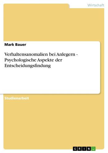 Verhaltensanomalien bei Anlegern - Psychologische Aspekte der Entscheidungsfindung (eBook)