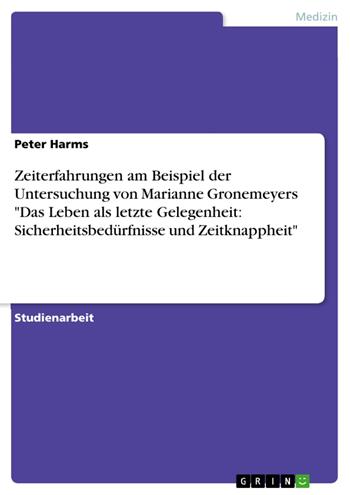 Zeiterfahrungen am Beispiel der Untersuchung von Marianne Gronemeyers "Das Leben als letzte Gelegenheit: Sicherheitsbedürfnisse und Zeitknappheit" (eBook)