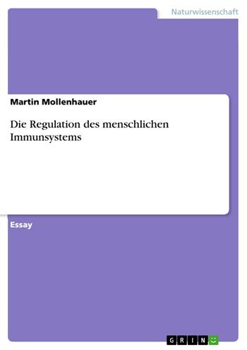 Essay aus dem Jahr 2002 im Fachbereich Biologie - Genetik / Gentechnologie, Note: 1,0, Ruprecht-Karls-Universität Heidelberg (Pharmazeutisches Institut), Veranstaltung: Ringvorlesung Biologie, Sprache: Deutsch, Abstract: Das Thema "Die Regulation des menschlichen Immunsystems" ist sehr komplex. Zu ihm gehören die Vorgänge bei Start und Stop der Immunantwort, die Rezeptormechanismen der Lymphozyten und die Selbsttoleranz des Körpers, mit denen Autoimmunerkrankungen verhindert werden. Trotz gut und reichlich vorhandener Literatur ist es aufgefallen, dass gewisse Vorgänge und Reaktionen in diesem Themenfeld gar nicht bekannt sind. Denn obwohl seit etwa 80 Jahren Untersuchungen in diesem Bereich unternommen werden, entziehen sich viele Vorgänge dem Verständnis der Wissenschaftler. Viele der Theorien, die aufgestellt werden, können nur in vitro nachgewiesen werden und stellen daher nie das gesamte komplexe chemische Milieu des menschlichen Körpers da. Es besteht die Schwierigkeit, aussagekräftige Experimente zu entwickeln, die entsprechende Vermutungen und Theorien untermauern können. Ein großer Sprung, besonders bei der Erforschung der Selbsttoleranzmechanismen, ist die Entwicklung der Gentechnik. Ich habe versucht die oben genannten Themengebiete zu beschreiben und bin im besonderen auf Rezeptormechanismen der Lymphozyten eingegangen, da erst durch diese sehr kleinen Moleküle die Immunreaktionen des menschlichen Organismus möglich gemacht wird. [...]