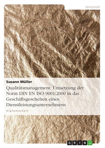 Diplomarbeit aus dem Jahr 2002 im Fachbereich BWL - Unternehmensführung, Management, Organisation, Note: 1,3, Verwaltungs- und Wirtschafts-Akademie Potsdam e.V. (-), Sprache: Deutsch, Abstract: Die Kunden erwarten heute von jeder Firma, daß die Qualität der Produkte den Anforderungen des Kunden entspricht. Eine hundertprozentige Qualität ist kein Leistungskriterium mehr im Wettbewerb, sondern wird vorausgesetzt. Dennoch ist es nicht immer einfach, die Qualität auch dauerhaft sicherzustellen. Qualität bezieht sich nicht mehr nur auf die Fehlerfreiheit der verkauften Leistung. Dazu gehört vor allem auch, dass die Prozesse innerhalb des Unternehmens ohne Fehler ablaufen. Dies greift in die gesamte Organisation ein. Insofern ist wichtig, zu verstehen, was Qualität meint, woraus Sie sich bezieht, und wen es betrifft. 1. Qualität meint nicht nur das Prüfen von Produkten am Ende des Herstellprozesses auf Fehlerfreiheit. Sie setzt mit der Qualitätsplanung schon bei der Entwicklung ein. 2. Qualität bezieht sich nicht nur auf Ihre Produkte oder fertige Leistungen, sondern auch auf Ihre laufenden betrieblichen Prozesse. Insbesondere diejenigen, die dazu notwendig sind, dass Kunden Ihre Produkte rechtzeitig erhalten oder auf die Prozesse, die hohe Kosten verursachen. 3. Qualität betrifft jeden Mitarbeiter im Unternehmen. Jeder hat im nächsten Prozess seinen eigenen Kunden, der hundertprozentige Qualität erwartet. In den letzten Jahren haben vor allem formale Qualitätsmanagementsysteme an Bedeutung gewonnen. Sie sind die Grundlage für die heutige Norm DIN EN ISO 9001:2000. In der Diplomarbeit wird nun betrachtet, wie auf Grundlage der Norm das Dienstleistungsunternehmen seine Betriebsabläufe erfolgsorientiert gestalten kann. 1.1 Der Qualitätsbegriff Der Qualitätsbegriff wird in der betriebswirtschaftlichen Literatur ausgiebig diskutiert. Doch das Phänomen der Qualität läßt sich nicht in einer Definition ausdrücken. Aus verschiedenen Sichtweisen heraus versucht die Literatur zu einer Definition zu gelangen. Beide Sichtweisen sind für das Qualitätsverständnis von Bedeutung. Systematisierend läßt sich Qualität nach objektiven und nach subjektiven Gesichtspunkten einteilen. Objektive Leistungsmerkmale eines Gutes setzten naturwissenschaftlich-technische Daten voraus. Das Gut wird objektiv gemessen auf Basis dieser vorhandenen definierbarer Daten.