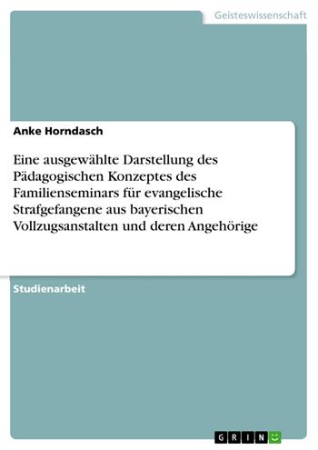Eine ausgewählte Darstellung des Pädagogischen Konzeptes des Familienseminars für evangelische Strafgefangene aus bayerischen Vollzugsanstalten und deren Angehörige (eBook)