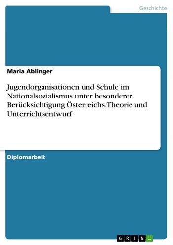 Diplomarbeit aus dem Jahr 2003 im Fachbereich Geschichte Deutschlands - Nationalsozialismus, Zweiter Weltkrieg, Note: Sehr gut, Pädagogische Hochschule Salzburg (Hauptschulausbildung), Sprache: Deutsch, Abstract: In der Zeit vor und während des zweiten Weltkriegs war auch das Leben der Kinder und Jugendlichen stark politisch geprägt. Diese Arbeit beschreibt, in welchem Ausmaß das Umfeld der jungen Menschen in den Dreißiger- und Vierziegerjahren des letzten Jahrhunderts vom nationalsozialistischen Regime beeinflusst wurde. Die parteieigenen Jugendorganisationen waren für eine „Freizeitgestaltung“ im Sinne des Nationalsozialismus zuständig, dabei standen die Vermittlung nationalsozialistischer Werte sowie die Vorbereitung auf den Krieg im Vordergrund. In dieser Arbeit werden Ideologie, Organisation, Ausbildungsinhalte und verschiedene Veranstaltungen der Hitlerjugend beschrieben. Auch die schulische Erziehung wurde massiv von der NSDAP beeinflusst. Hier wird ein Einblick in die nationalsozialistische Ideologie der schulischen Erziehung, die Lehrziele, Schulbücher, das Lehrerverhalten und das Schicksal der jüdischen Schüler gegeben. Auch der starke Einfluss der Hitlerjugend auf die Schule wird thematisiert. Dabei wird das Thema mit einem besonderen Fokus auf die Situation in Österreich beleuchtet. Im anschließenden praktischen Teil der Arbeit wird die Thematik in Form einer Materialzusammenstellung für Offenes Lernen für den Einsatz im Geschichtsunterricht in der Sekundarstufe aufgearbeitet. Schlüsselwörter: Nationalsozialismus, Austrofaschismus, Hitlerjugend, Offenes Lernen