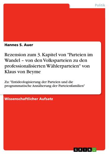 Rezension zum 3. Kapitel von "Parteien im Wandel – von den Volksparteien zu den professionalisierten Wählerparteien" von Klaus von Beyme (eBook)
