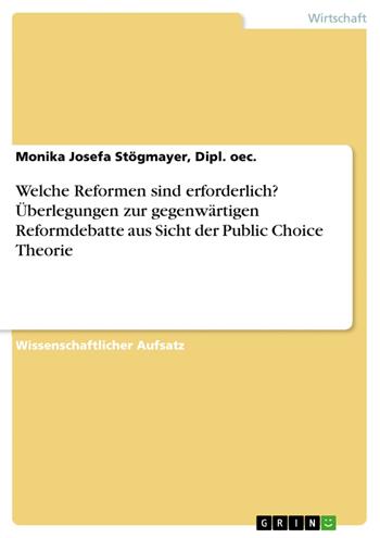 Welche Reformen sind erforderlich? Überlegungen zur gegenwärtigen Reformdebatte aus Sicht der Public Choice Theorie (eBook)