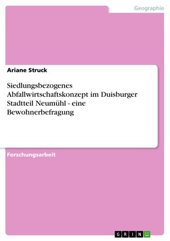 Siedlungsbezogenes Abfallwirtschaftskonzept im Duisburger Stadtteil Neumühl - eine Bewohnerbefragung (eBook)