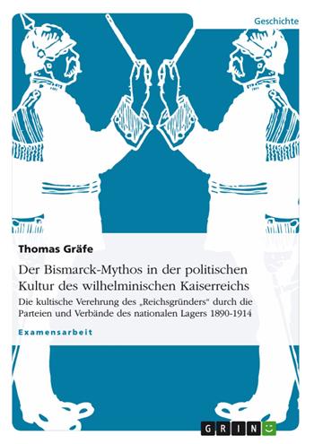 Examensarbeit aus dem Jahr 2002 im Fachbereich Geschichte Deutschlands - 1848, Kaiserreich, Imperialismus, Note: 1,0, Universität Bielefeld (Fakultät für Geschichtswissenschaft und Philosophie), Sprache: Deutsch, Abstract: Die Arbeit behandelt die kultische Verehrung des "Reichsgründers" Bismarck im wilhelminischen Kaiserreich vorrangig durch die Parteien, Vereine und Verbände des nationalen Lagers. Im Mittelpunkt steht die Politisierung des Kultes in Denkmalsbau und Festen, d.h. die Ausrichtung von Rhetorik und Symbolik auf die Opposition gegen die Politik des "Neuen Kurses" und den Kampf gegen die "inneren Reichsfeinde".