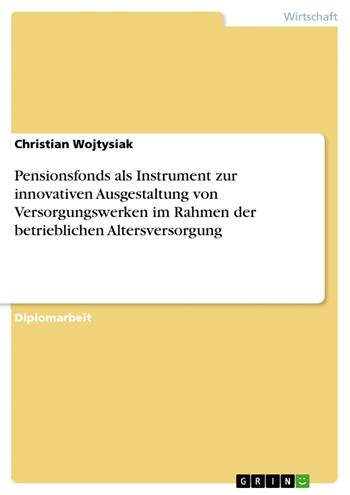 Diplomarbeit aus dem Jahr 2001 im Fachbereich BWL - Investition und Finanzierung, Note: 1,0, HAWK Hochschule für angewandte Wissenschaft und Kunst - Fachhochschule Hildesheim, Holzminden, Göttingen (Wirtschaft), Veranstaltung: Finanzierung, Sprache: Deutsch, Abstract: Die vorliegende Arbeit ist in sieben Teile gegliedert. Im folgenden zweiten Teil werden nach einer kurzen Darstellung des Aufbaus des Alterssicherungssystems der Bundesrepublik Deutschland die Grundlagen der betrieblichen Altersversorgung beschrieben, die zum Verständnis der Gesamtzusammenhänge hilfreich bzw. erforderlich sind. Im einzelnen werden die klassischen Durchführungswege der bAV dargestellt, die Zusagearten für Versorgungsleistungen, sowie der status quo und die Ursachen für den Reformbedarf des Alterssicherungssystems allgemein und der betrieblichen Altersversorgung im Besonderen. In Teil drei erfolgt die Darstellung der wichtigsten Neuerungen für betriebliche Versorgungswerke, die sich im Zuge der Rentenreform des Jahres 2001 ergeben haben. Im Abschnitt vier werden zunächst der Begriff des Pensionsfonds und das Konzept des sogenannten „Asset Fundings“ näher beschrieben. Danach werden die Grundzüge der Ausgestaltung betrieblicher Versorgungswerke in vier Staaten mit besonders traditionsreichen bzw. innovativen Pensionsfondssystemen vorgestellt. Als Schwerpunkt im vierten Teil folgt die ausführliche Darstellung der unternehmensinternen und unternehmensexternen Ausgestaltung von innovativen betrieblichen Versorgungswerken vor dem Hintergrund der aktuellen bzw. zukünftigen Gesetzeslage. Im einzelnen sind dies der betriebsinterne Pensionsfonds, das Zeitwertmodell, das CTAModell und der VAG-Pensionsfonds. Dabei wird vor allem auf die gesetzlichen Grundlagen, die Anlagerichtlinien sowie die Grundzüge der steuerlichen und bilanziellen Rahmenbedingungen eingegangen. Abschließend erfolgt eine kritische Bewertung der einzelnen Ausgestaltungswege. Ergänzt wird die Darstellung durch Beispiele aus der Praxis. Im fünften Abschnitt werden Spezialfonds und Publikumsfonds als Anlageinstrumente für betriebliche Versorgungswerke vorgestellt und grundlegende Faktoren für das Management des Vermögens (Assets) und der Verbindlichkeiten (Liabilities) von Pensionsfonds beschrieben. Abschließend folgt eine kurze Darstellung der Bedeutung von Pensionsfonds für die internationalen Kapitalmärkte.