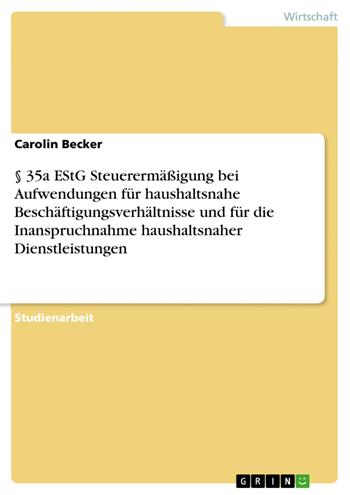 § 35a EStG Steuerermäßigung bei Aufwendungen für haushaltsnahe Beschäftigungsverhältnisse und für die Inanspruchnahme haushaltsnaher Dienstleistungen (eBook)
