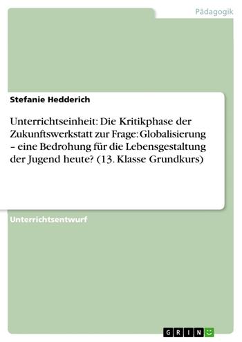Unterrichtseinheit: Die Kritikphase der Zukunftswerkstatt zur Frage: Globalisierung – eine Bedrohung für die Lebensgestaltung der Jugend heute? (13. Klasse Grundkurs) (eBook)