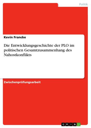 Zwischenprüfungsarbeit aus dem Jahr 2004 im Fachbereich Politik - Region: Naher Osten, Vorderer Orient, Note: 2,0, Carl von Ossietzky Universität Oldenburg, Veranstaltung: Der Nahe Osten im Blickfeld der Internationalen Politik, Sprache: Deutsch, Abstract: Der Konflikt um den schmalen Streifen Land am östlichen Mittelmeer, das Palästina genannt wird, besteht nun seit Beginn des 20. Jahrhunderts. Maßgeblich zurück zu führen ist der heutige Zustand, ein Zustand, in dem sich Zionisten1 und arabische Nationalisten feindselig gegenüberstehen, auf die kurzsichtige und widersprüchliche Kolonialpolitik Großbritanniens während des 1. Weltkrieges. Der geheime britisch-französische Teilungsplan vom Mai 1916 – Sykes-Picot-Abkommen –, der den Vorderen Orient zwischen beiden Staaten aufteilte, widersprach dem Angebot des britischen Hochkommissars MacMahon an den Sherifen von Mekka, Hussein, 1915/16. Vor dem 1. Weltkrieg gehörten große Teile des Nahen Ostens zum Osmanischen Reich. Als Gegenleistung für einen arabischen Aufstand gegen die mit Deutschland und Österreich-Ungarn verbündeten Osmanen versprach MacMahon, sich für ein großarabisches Reich in Palästina und Syrien einzusetzen. Mit der Balfour- Deklaration im November 1917 war das Chaos perfekt. Sie unterstützte die „Schaffung einer nationalen Heimstätte in Palästina für das jüdische Volk mit Wohlwollen“2. Die Absicht der Briten war es gewesen, die zionistischen gegen nationalarabische Interessen auszuspielen und damit als lachender Dritter den britischen Einfluss auf die Kolonie Palä stina, die offiziell ein Mandat des Völkerbundes an Großbritannien war, zu sichern. In letzter Konsequenz entstand am 14. Mai 1948 der Staat Israel, nachdem Großbritannien sein Mandat zurück gegeben hatte. Auf palästinensischer Seite hat sich die PLO als legitime Vertretung etabliert. Ursprünglich war sie als ein Produkt des innerarabischen Machtkampfes in den 60er Jahren gegründet worden. Im politischen Gesamtzusammenhang des Nahostkonflikts behandelt diese Arbeit die Entwicklungsgeschichte der PLO. Nach eingehender Untersuchung der Gründungsgeschichte wird im weiteren Verlauf eingehend die Fatah, die bestimmende Gruppierung innerhalb der PLO, und ihre Eingliederung in die PLO dargestellt. Nach einer Darstellung der Entwicklungsgeschichte der PLO bis in die 1990er Jahre und der Intifada 1987 werde ich abschließend mit dieser Arbeit folgenden Fragenkatalog klären: Zu welchem Zweck wurde die PLO gegründet? Was verhalf ihr zum Aufstieg bzw. zur Anerkennung? Was sind die Ziele der PLO? Ist die PLO demokratisch aufgebaut?