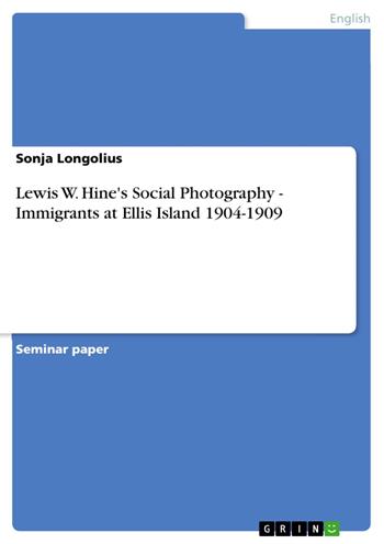 Seminar paper from the year 2003 in the subject American Studies - Culture and Applied Geography, grade: 1, University of Hamburg (Amerikanistik), course: Hauptseminar, language: English, abstract: In the first decade of the 20th century, when Lewis W. Hine took his first photo series at Ellis Island, 7 million immigrants came to the United States of America. In 1907 immigration’s peak was reached, when almost 3.000 immigrants, most of whom came from Southern and Eastern Europe, entered the New World on a daily basis. After Ellis Island had re-opened its gates for the immigration procedure in 1900, more than 75 percent of all immigrants who came to the United States entered the country through the port of New York City. In regard of these immigration numbers, one needs to ask how the inhabitants of New York City and American citizens in general reacted towards this mass immigration. In comparison to former immigrants, who mostly came from Northern and Western Europe, these “new” immigrants were not welcomed at all. Severe prejudices had already developed towards persons from countries which many native-born Americans seemed to consider as “undesirable” ones at that time. Mainly people’s fear resulted from ignorance, because to them these immigrants seemed to be an indistinguishable mass which overcrowded America. Many people feared that these immigrants would take away their jobs and living-space. There seemed to be little sympathy for those needy homeless, whose foreign appearance and different customs irritated the citizens of New York and elsewhere in the country. When Lewis W. Hine went to Ellis Island to portrait those “huddled masses”, he must have had all those fears and prejudices against these newly arrivers in mind. Undoubtedly, there was a “great public interest in the issue of immigration” when he started his project in 1904 and Hine “was by no means the first, or only, photographer to work at Ellis Island. ” Nevertheless, his approach seems to differ from the ones of other photographer of his time. Interestingly, something had happened at Ellis Island to make the teacher Hine want to become a professional photographer. I will try to reveal Hine’s personal opinion towards the social problem of immigration as well as his approach for betterment. Furthermore, I will discuss his photographic aims and goals by examining selected photographs of his first photographic series at Ellis Island.