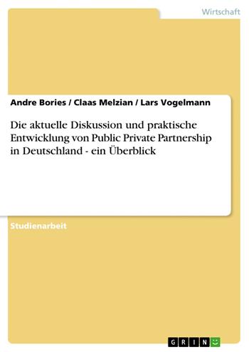 Studienarbeit aus dem Jahr 2005 im Fachbereich BWL - Wirtschaftspolitik, Note: 1,3, Universität Hamburg (Department für Wirtschaft und Politik), Veranstaltung: Public Management, Sprache: Deutsch, Abstract: Public Private Partnership(s) (PPP) als eine Form der Zusammenarbeit von Staat und Privatwirtscha ft kamen in den USA bereits in den 1940er Jahren zur Anwendung und haben sich seit den 1970er Jahren dort als ein essentieller Bestandteil der staatlichen Aufgabenerfüllung etabliert.1 Hierzulande begann diese Entwicklung erst Ende der 1970er Jahre, als erstmals öffentliche Verwaltungen in größerem Umfang Kooperationen mit Privaten eingingen. 2 Mittlerweile ist der öffentliche Sektor angesichts leerer Kassen einerseits gezwungen in seiner Aufgabenwahrnehmung neue Wege zu beschreiten, andererseits verschärft die EU-Wettbewerbskonzeption diesen Trend noch, indem sie unter dem Aspekt neuer Wettbewerbsstrategien Kooperationen, von öffentlicher Verwaltung und privater Wirtschaft, zur Umsetzung und Finanzierung verschiedener öffentlicher Projekte unumgänglich macht. Des Weiteren sollen PPPs dazu dienen, privatwirtschaftliche Managementkonzepte in die öffentliche Aufgabenbewältigung einzubringen, um für eine höhere Effizienz zu sorgen. 3 Im Rahmen dieser Arbeit soll über die aktuelle Diskussion und praktische Entwicklung von PPP in Deutschland ein Überblick verschafft werden. Dabei wird zu Beginn eine klare Begriffsabgrenzung gegenüber anderen Kooperationsformen von öffentlicher Hand und Privaten vorgenommen. Anschließend werden spezifische Anwendungsfelder bezeichnet, sowie die unterschiedlichen Motive von staatlichen und privaten Partnern bei der Umsetzung von PPP-Projekten aufgezeigt. Auf die Vorstellung einiger denkbarer Formen von PPP folgen einzelne Beispiele bereits realisierter Partnerschaften, sowie ein Wirtschaftlichkeitsvergleich von PPPs. Die Arbeit endet mit einer kritischen Betrachtung und einem Ausblick für die Zukunft von PPPs. Die Arbeit endet mit einer kritischen Betrachtung und einem Ausblick für die Zukunft von PPPs.
