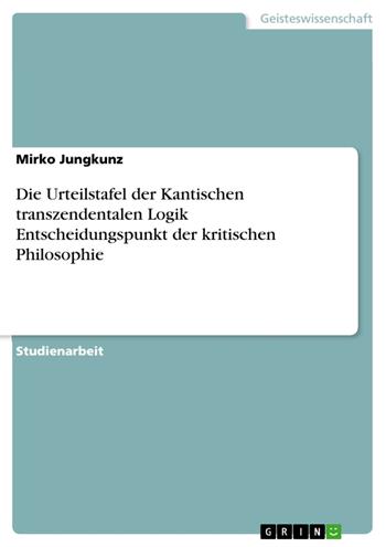 Die Urteilstafel der Kantischen transzendentalen Logik Entscheidungspunkt der kritischen Philosophie (eBook)