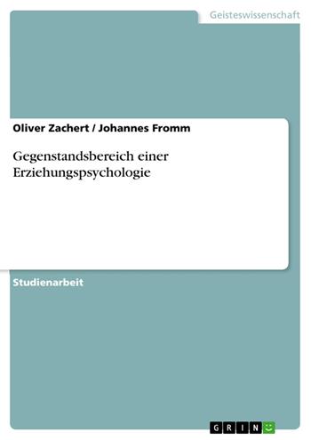 Gegenstandsbereich einer Erziehungspsychologie (eBook)