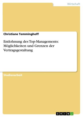 Studienarbeit aus dem Jahr 2005 im Fachbereich Führung und Personal - Sonstiges, Note: 1,3, FernUniversität Hagen, Sprache: Deutsch, Abstract: Seit Jahren steht die Vergütung von Führungskräften im Mittelpunkt nicht nur unternehmenspolitischer, sondern auch wissenschaftlicher Diskussionen. In der Kritik steht hierbei sowohl die Entwicklung des Niveaus wie auch die Struktur der Managerlöhne. So betrug die durchschnittliche Vor-standsvergütung im Jahre 1997 mit umgerechnet 1,4 Mio. Euro das 50fache, in den Jahren 2001-2003 mit 7 Mio. Euro das 240-fache des durchschnittlichen Bruttoverdienstes eines Arbeitnehmers. Innerhalb der Struktur der Managerlöhne ist die Zunahme in der aktienkursorientierten Entlohnung, wie z. B. in Form von Stock Options, der auffälligste Trend in der Entlohnungspraxis der vergangenen Jahrzehnte. Als Motiv für die weltweite Ausbreitung von Aktienoptionsplänen als Vergütungsinstrument wird häufig die zunehmende Internationalisierung der Kapitalmärkte angeführt. Insbesondere institutionelle Investoren verlangen eine risikoadäquate Rendite auf das eingesetzte Kapital und somit eine Fokussierung der Unternehmensführung auf die Erhöhung des Unternehmenswerts. Im Zuge dessen ist zum Schutz der Wahrung der Interessen der Aktionäre der Deutsche Corporate Governance Kodex (DCGK) eingeführt worden. Ziel dieser Arbeit ist die Möglichkeiten und Grenzen der Vertragsgestaltung von Top-Managern aufzuzeigen. Hierzu werden zunächst die rechtlichen Rahmenbedingungen und die Vorgaben des DCGK vorgestellt. In einem zweiten Schritt werden die verschiedenen Entlohnungskomponenten kurz skizziert und im Anschluss werden deren Stärken und Schwächen diskutiert. In einem dritten Schritt werden die Möglichkeiten und Grenzen der Vertragsgestaltung vor dem gesetzlichen Hintergrund durchleuchtet. Abschließend erfolgt eine kurze Zusammenfassung verbunden mit einem Ausblick in die Zukunft.