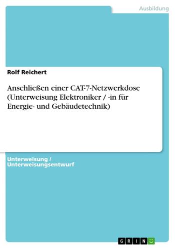 Unterweisung / Unterweisungsentwurf aus dem Jahr 2007 im Fachbereich AdA Handwerk / Produktion / Gewerbe - Elektroberufe, Note: 2, , Sprache: Deutsch, Abstract: Bei dieser Arbeit handelt es sich um eine Unterweisung für den Ausbildungsberuf als Elektroniker/Elektronikerin für Energie- und Gebäudetechnik im Rahmen der Ausbilder-Eignungsprüfung mit dem Thema "Anschließen einer Cat.-7-Netzwerkdose" auf 13 Seiten.