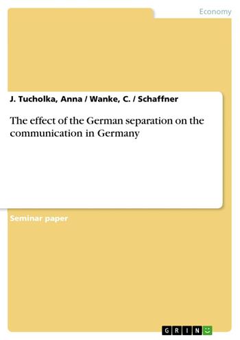 Seminar paper from the year 2007 in the subject Tourism - Miscellaneous, grade: 1,7, Stralsund University of Applied Sciences, course: Intercultural communication, language: English, abstract: Communication is everything. Nowadays communication is involved in every part of our life. Interactions and interrelations between different people is the basis for social competences, politics, economy, education and many things more. Since we live in a global world we always have to deal with lots of different cultures. And every culture has its own understanding of communication, does use different communication systems. Above that every single human being of a cultural system has its own personality and values. We need a common basis where we can establish competent behaviour. We have to have a look at the collusion to avoid irritations and misunderstandings. Normally intercultural communication deals with differences/ problems between members of different cultures. But this aspect can be transmitted to the communication within one country. A special part of this topic is the situation in Germany under the aspect of communication and cultural differences. Germany has a special position in Europe caused by its history. The separation between East and West is still a topic to refer to. The collusion and the similarities are partially smaller than expected after 16 years of the reunification. In the following essay different aspects of communication and intercultural behaviour shall be applied to Germany’s current situation. Reasons and possible explanations are given and in the end Germany’s real position is identified and proposals for solution of still existing problems are given. All the information given are based on general scientific methods and ideas concerning communication and culture as well as on personal experiences and a survey implemented by the authors of this essay. The meaning of culture is higher than normally thought. We need “bridges for understanding”, as Richard von Weizsäcker mentioned it in his book of the same name. This concerns not only peoples from all over the world but also the inhabitants of Germany. Only by understanding the culture and the way of communication of his neighbour one is able to create harmony, freedom and liberty.