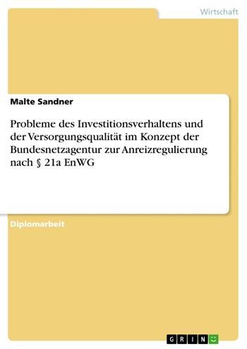 Probleme des Investitionsverhaltens und der Versorgungsqualität im Konzept der Bundesnetzagentur zur Anreizregulierung nach § 21a EnWG (eBook)