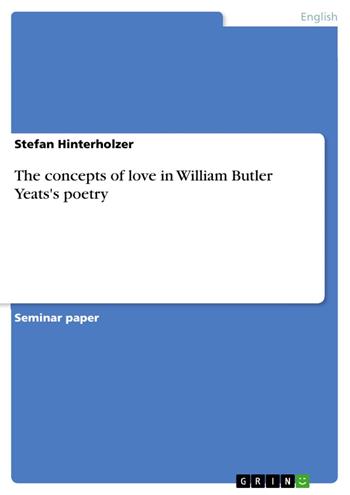 Seminar paper from the year 2007 in the subject English Language and Literature Studies - Literature, grade: 1, University of Innsbruck (Department of English), course: The Irish Literary Revival, language: English, abstract: Love was one of William Butler Yeats’s great inspirations. It was love that kept him moving and developing. It was love that confused him and made him reflect. It was love that shattered him and made him mourn. Yeats’s experience with love was rich and fulfilling as well as frustrating and devastating. In order to come to a better understanding of Yeats’s love poetry, we need to take a look into his private life: “Yeats met the fiery revolutionary [Maud Gonne] in 1889. He fell deeply in love with her and would propose to her in 1891, 1899, 1900, 1901, and 1916. Gonne had no use for Yeats's proposals. However, she did have a use for his talents. Gonne would use Yeats for his ability as an orator. Maud Gonne, dragging him at her heels on nationalist agitations, soon found that he was a natural orator and could easily dominate committees. Maud Gonne would continue to turn Yeats proposals down, yet she continued to be the catalyst for the finest love poetry Yeats would ever create. Gonne would once ask for Yeats's help in London, ending a brief but happy love affair with Olivia Shakespear. Sensing divided loyalty, Shakespear would end the affair and it was shortly thereafter that Lady Gregory would save Yeats from a potentially more tragic end, like the poets of the tragic generation” (cf. nadn.navy). Yeats really loved Maud Gonne. She was the love of his life, and still, she would never really react to, let alone return his love. Yeats has experienced the many different facets of love through this continuous interaction between his everlasting true and sincere affection and dedication and her cold and calculating rejection. But although this may be a personal tragedy it also resulted in something positive and beautiful, namely Yeats’s love poetry Maud Gonne inspired him to. Yeats managed to deal with all his positive and negative experiences in a productive way and included them into his poetry. Maud Gonne once even said to him that she could not stop rejecting him as he would not write such beautiful poetry about her anymore then. As said, Yeats’s perception and concepts of love can be identified in his poetry. Furthermore, we can identify a development of Yeats’s depiction of love in his poetry. We can find many different sides of love in Yeats’s poems. In some poems, Yeats describes it as an almost divine power. In other poems, he starts doubting whether love is really that fulfilling or not. And in further poems, he even focuses on the dark and destructive sides of love. These different concepts of love will be described in this paper through the analysis of selected poems.