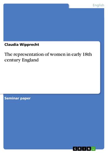 Seminar paper from the year 2006 in the subject English Language and Literature Studies - Literature, grade: 1,3, University of Erfurt (Philosophische Fakultät), course: The Rise of English Journalism in the Early 18th Century, language: English, abstract: I) The first half of the 18th century The important essay by John Locke Essay concerning human understanding (1690) made an exceptionally high impact in the 18th century. His rejection of Descartes’ ‘innate ideas’ constituted the basis for the discussion about abilities and rights of women in the 18th century. A.R. Humphreys noted: “Throughout the century a skirmish went on between conservatives who argued for the grand principle of subordination and progressives, who, guided by the clear light of reason, contended for woman’s rational and social equality.”1 The married woman was considered to have neither rights nor property due to the fact that with the marriage all her property exchanged automatically to her husband. The ideal of marriage in the 18th century is described by W.L. Blease: “ … the ideal of marriage had been brought to its lowest possible level […] it emphasized the sexual side of the connection, and almost entirely disregarded the spiritual.”2 The average age for marrying rested with 17 years, which was the reason that most young women could not satisfy their positions as mothers. The only profession women could have was that of a wife and mother; as Blease said “A respectable woman was nothing but the potential mother of children.”3. However, there was the problem of a surplus of women. Some women had the possibility to teach children, which was not very high regarded. Most women, however, had only the possibility to prostitute themselves which was a crucial problem of this times (Einhoff, 1980: 35). Terms like ‘the fair sex’, ‘the soft sex’ and ‘the gentle sex’ designated the relationship of the sexes; the weak and tender woman needs to be protected by the strong man, which disguised the reality of absolute subordination of most women. It is also remarkable that there were only a few legal divorces which can be interpreted as a sign for the tacit sanction of adultery, the general standing of the value of marriage and the hopelessness of a divorced woman without rights and financial resources.