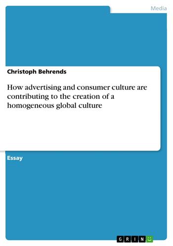 Essay from the year 2005 in the subject Communications - Mass Media, grade: 1,7, University of Leicester (University of Leicester - Centre for Mass Communication Research), course: Advertising, Culture and Communication , language: English, abstract: Urban dwellers in the Western world have witnessed a change of their cityscapes recently. Small independent stores, restaurants and coffee bars have been replaced by stores of multinational companies, such as Tesco, McDonald’s, Burgerking, Starbucks, H&M and The Gap. No matter if you are exploring the city centre of Leicester, London or Hamburg, you find more and more branches of large-scale business companies, attempting to attract consumers with their big, bright logos. The same process can be found in the media – global brands such as Hewlett-Packard and Coca Cola advertise all around the globe, or in terms of Barnet et al (1995: p. 164): “Marlboro country is everywhere”. While the unification of city centres has been much-discussed, further questions need to be elaborated on: In how far are these phenomena results of globalisation? Which consequences do they have for life in Western societies? Is there a global homogenisation of culture, and if so, to what extent? Which role does advertising play in this process? These and other questions are discussed in this paper.