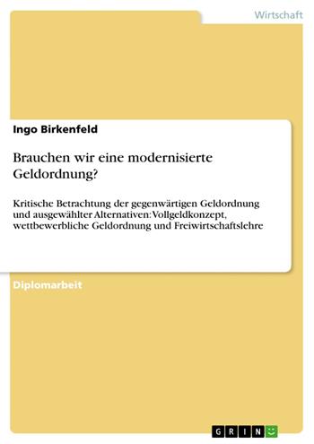 Diplomarbeit aus dem Jahr 2007 im Fachbereich BWL - Wirtschaftspolitik, Note: gut, Bergische Universität Wuppertal, Sprache: Deutsch, Abstract: Wo liegen die Ursachen von Massenarbeitslosigkeit, Finanzkrisen, Wirtschaftskrisen und das tendenzielle Auseinanderdriften armer und extrem reicher Bevölkerungsgruppen? Dürfen diese Bereiche tatsächlich in einem Atemzug genannt werden? Wo liegen die Zusammenhänge? Als zentrale These wird in der vorliegenden Arbeit vertreten, dass ein solcher Zusammenhang in der Geldordnung zu finden ist. Es wird kritisch hinterfragen und überprüft, ob eine modernisierte Geldordnung notwendig ist, um Wohlstand und Beschäftigung für alle Bevölkerungsgruppen nachhaltig sichern zu können, ohne dabei den Staat und das Sozialbudget übermäßig zu belasten. Folgende zwei Fragen stehen im Mittelpunkt der Arbeit und werden in der Schlussbetrachtung wieder aufgegriffen: 1. Können wir bestimmte Probleme und negative Entwicklungen in unserer Gesellschaft und Wirtschaft auf die gegebenen Strukturen der Geldordnung zurückführen? (Kapitel 3) 2. Welche Reformansätze lassen sich in der wissenschaftlichen Diskussion finden (Kapitel 4) und wie sinnvoll sind diese Ansätze (Kapitel 5)?