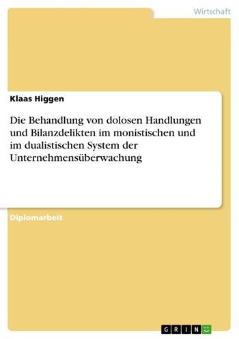 Die Behandlung von dolosen Handlungen und Bilanzdelikten im monistischen und im dualistischen System der Unternehmensüberwachung (eBook)