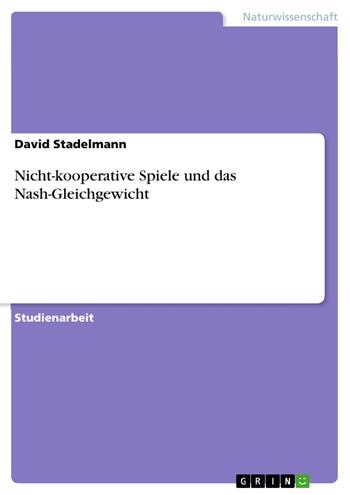 Studienarbeit aus dem Jahr 2007 im Fachbereich Mathematik - Sonstiges, Note: 1.0, Université de Fribourg - Universität Freiburg (Schweiz) (Departement für Mathematik), Veranstaltung: Freies Seminar, Sprache: Deutsch, Abstract: Der Begriff des Nash-Gleichgewichts ist ein zentraler Begri¤ der mathematischen Spieltheorie. Es handelt sich dabei um ein Lösungskonzept von Spielen, das sich dadurch auszeichnet, dass die Spieler ihre Strategieentscheidungen nicht revidieren wollen, wenn ihnen die Lösung empfohlen wird. Dieses Lösungskonzept ist allgemein für nicht-kooperative Spiele akzeptiert und wird als Gleichgewicht bezeichnet. Die Spieltheorie (engl. game theory) ist ein Teilgebiet der Mathematik, das sich mit der Modellierung und Untersuchung von Gesellschaftsspielen, von im weitesten Sinn gesellschaftsspielähnlichen Interaktionssystemen sowie mit den in solchen Systemen eingesetzten Strategien beschäftigt. Dabei ist die Spieltheorie weniger eine zusammenhängende Theorie als vielmehr ein Instrument zur Analyse von strategischen Entscheidungssituationen. Lösungen von Spielen, die sich dadurch auszeichnen, dass die Spieler ihre Strategieentscheidungen nicht revidieren wollen wenn ihnen die Lösung empfohlen wird, werden als Gleichgewicht bezeichnet. Im Rahmen dieser Arbeit soll insbesondere auf ein allgemein akzeptiertes Konzept zur Lösung von nicht-kooperativen Spielen eingegangen werden, das Nash-Gleichgewicht. In einem weiteren Schritt wird genauer auf eine oft verwendete Art von Spielen, die sogenannten streng kompetitiven Spiele oder auch Nullsummenspiele, eingegangen und kurz angedeutet, wie die Theorie der nicht-kooperativen Spiele auf jene der kooperativen erweitert werden kann.