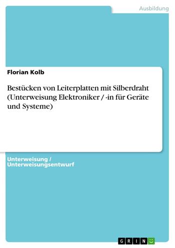 Unterweisung / Unterweisungsentwurf aus dem Jahr 2008 im Fachbereich AdA Handwerk / Produktion / Gewerbe - Elektroberufe, Note: 2,0, , Veranstaltung: Ada Prüfung, Sprache: Deutsch, Abstract: Durch immer kleiner werdende elektronische Geräte wird die Herstellung und Reparatur von Leiterplatten (Platinen) immer anspruchsvoller. Deshalb beschäftigt sich die Ausbildung des Elektronikers für Geräte und Systeme unter anderem mit der Bestückung von Leiterplatten. (§19 Abs.1 Nr.13 d des Ausbildungsrahmenplans). Diese Unterweisung enthält nur einen Teilbereich aus den Anforderungen des Ausbildungsrahmenplans und beschäftigt sich mit der Leitungsführung von Silberdraht auf einer Euro Lochrasterplatine. Diese Ausbildung baut auf eine vorangegangene Ausbildung auf und soll dem Auszubildenden dazu dienen die Fertigkeit zu erlangen, Leitungsbahnen aus Silberdraht fachgemäß und ordentlich auszuführen um später, mittels von Schaltplänen ,einwandfreie und vor allem funktionierende Platinen herzustellen.