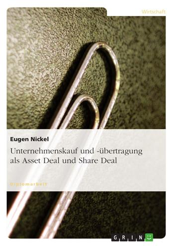 Diplomarbeit aus dem Jahr 2008 im Fachbereich BWL - Recht, Note: 2,0, Bergische Universität Wuppertal, Sprache: Deutsch, Abstract: Ausgangspunkt eines Unternehmenskaufs ist typischerweise die unternehmerische Entscheidung über den Kauf beziehungsweise Verkauf eines Unternehmens. Werden sodann zwischen dem Verkaufs- und dem Kaufinteressenten Verhandlungen geführt und wird schließlich der Unternehmenskaufvertrag geschlossen, so stellt sich für die Beteiligten zwangsläufig die Frage nach der rechtlichen Gestaltung des Kaufvertrages. Bei der Strukturierung des Unternehmenskaufs ist zwischen den beiden folgenden Grundformen des Unternehmenskaufs zu unterscheiden: - Kauf- und Übertragungsvertrag über die einzelnen Vermögensgegenstände und ggf. die Übernahme von Schulden (sog. Asset Deal) und - Kauf- und Übertragungsvertrag über die Anteilsrechte an einer Personen- oder Kapitalgesellschaft (sog. Share Deal). Jede dieser Grundformen hat unterschiedliche zivilrechtliche und (teilweise) steuerrechtliche Folgen und ist mit unterschiedlichen Vor- und Nachteilen für die Beteiligten verbunden. Aufgrund der Vertragsfreiheit steht den Parteien jedoch ein großer Gestaltungsspielraum bei der Vertragsgestaltung zur Verfügung. So können die Vertragsparteien sowohl beim Asset Deal als auch bei Share Deal von den gesetzlichen Regelungen zum Teil abweichen und ihre eigenen Interessen berücksichtigen. In dieser Arbeit wird auf die beiden Grundformen des Unternehmenskaufs eingegangen. Es werden jeweils die gesetzlichen Folgen dargestellt und die Möglichkeiten der Beteiligten analysiert, den Unternehmenskaufvertrag zu gestalten. Dabei wird insbesondere auf die Frage eingegangen, welche Vertragsgestaltung für den Käufer bzw. Verkäufer am vorteilhaftesten ist und wie die natürlichen entgegengesetzten Interessen der Beteiligten in Einklang gebracht werden können. Zunächst wird auf einige Grundbegriffe (Kapitel 2) sowie auf den Ablauf eines Unternehmenskaufs (Kapitel 3) eingegangen. Sodann werden ausführlich der Asset Deal (Kapitel 4) und der Share Deal (Kapital 5) behandelt. Dabei wird sowohl auf die zivilrechtlichen als auch auf die steuerrechtlichen Aspekte eingegangen. Anschließend werden besondere Formen des Unternehmenskaufs (Kapitel 6) sowie Besonderheiten bei einem grenzüberschreitenden Unternehmenskauf dargestellt (Kapitel 7). Danach werden Asset Deal und Share Deal miteinander verglichen (Kapitel 8). Zum Schluss wird ein Fazit gezogen (Kapitel 9).