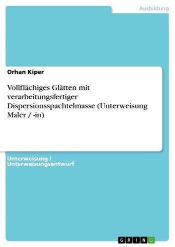 Unterweisung / Unterweisungsentwurf aus dem Jahr 2008 im Fachbereich AdA Handwerk / Produktion / Gewerbe - Maler, Lackierer, Fliesenleger, Note: 2, Fachoberschule, Veranstaltung: Maler und Lackierermeisterschule, Sprache: Deutsch, Abstract: Unterweisung „Vollflächiges Glätten mit verarbeitungsfertiger Dispersionsspachtelmasse“ im Rahmen der Malermeisterprüfung
