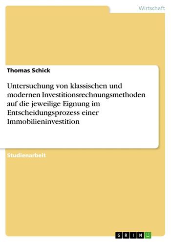 Untersuchung von klassischen und modernen Investitionsrechnungsmethoden auf die jeweilige Eignung im Entscheidungsprozess einer Immobilieninvestition (eBook)