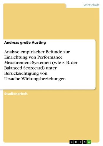 Analyse empirischer Befunde zur Einrichtung von Performance Measurement-Systemen (wie z. B. der Balanced Scorecard) unter Berücksichtigung von Ursache-Wirkungsbeziehungen (eBook)