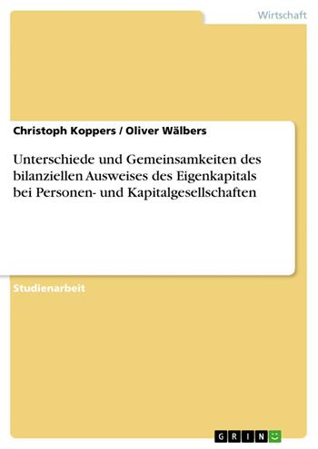 Studienarbeit aus dem Jahr 2008 im Fachbereich BWL - Rechnungswesen, Bilanzierung, Steuern, Note: 2,3, Fachhochschule für Oekonomie & Management gemeinnützige GmbH, Hochschulstudienzentrum Duisburg, Veranstaltung: Accounting, Sprache: Deutsch, Abstract: Die klare Gegenüberstellung der unterschiedlichen Ausweismethoden und Bilanzierungspflichten der beiden Gesellschaftsarten (Personen-gesellschaften und Kapitalgesellschaften) zeigt deutlich, dass die Sicherung der Grundfunktionen des Eigenkapitals einer Gesellschaft im Vordergrund steht und mit gesetzlichen Reglementierungen verankert ist. Die Primärfunktionen des Eigenkapitals beziehen sich auf die Haftung und Kontinuität der Gesellschaft und tangieren somit den Gläubigerschutz. Bei den vom Gesetzgeber erhobenen Auflagen zur Bilanzierung des Eigenkapitals stehen die Kapitalgesellschaften im Mittelpunkt. Die Reglementierungen bei den Personengesellschaften sind im direkten Vergleich maginal. Im Gegensatz zu Personengesellschaften besitzen Kapitalgesellschaften eine beschränkte Haftung auf das Gesellschafts-vermögen, während die Gesellschafter einer Personengesellschaft mit ihrem gesamten Vermögen haften. Dieser Haftungsunterschied begründet die ungleiche Verteilung der Vorschriften und gesetzlichen Auflagen bei Personengesellschaften und Kapitalgesellschaften. Ein weiterer Grund für die Dominanz der gesetzlichen Reglementierungen bei Kapitalgesellschaften ist die Rechtspersönlichkeit der Unternehmung, die durch natürliche Personen vertreten wird. Die Kapitalgesellschaften können aufgrund der zwischengeschalteten juristischen Person und der beschränkten Haftung für betrügerische Absichten missbraucht werden. Diese Eigenschaften existieren bei der Personengesellschaft nicht, da die Gesellschafter mit ihrem vollen Vermögen haften.
