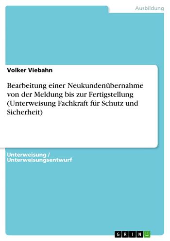 Bearbeitung einer Neukundenübernahme von der Meldung bis zur Fertigstellung (Unterweisung Fachkraft für Schutz und Sicherheit) (eBook)
