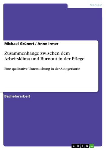 Bachelorarbeit aus dem Jahr 2009 im Fachbereich Pflegewissenschaft - Sonstiges, Note: 2,0, Evangelische Hochschule Berlin, Sprache: Deutsch, Abstract: Die vorliegende Bachelor-Arbeit zeigt, wie sehr das Burnout-Syndrom in den letzten Jahren immer mehr an Bedeutung gewonnen hat und wie hoch die Kosten sind, die die Auswirkungen eines Burnouts verursachen. Es gibt viele Theorien dazu, wie Burnout entsteht und welche Ursachen existieren. Diese Arbeit gibt einen groben Überblick über einige Konzepte und den mutmaßlichen Verlauf des Ausbrennens. Zudem spiegelte die systematische Literaturanalyse den Zusammenhang zwischen dem Arbeitsklima und dem Risiko an Burnout zu erkranken wieder. Für eine empirische Untersuchung wurden vier Pflegepersonen von unterschiedlichen akutgeriatrischen Stationen zum Erleben des jeweiligen Arbeitsklimas und dessen Einflussfaktoren befragt. Im Abgleich der theoretischen und empirischen Auswertung ergaben sich Einflussfaktoren auf das Arbeitsklima, wie beispielsweise die Führungsqualitäten der Stationsleitung, das Verhältnis der einzelnen Teammitglieder untereinander und insbesondere die gegenseitige Unterstützung und die Zusammenarbeit im Team. Diese können das Arbeitsklima positiv wie negativ beeinflussen. Dabei kann das Arbeitsklima als zusätzlicher Be- oder Entlastungsfaktor dienen und einen Burnoutprozess zusätzlich fördern oder mindern. Die Ergebnisse liefern wichtige Erkenntnisse, die aufzeigen, dass eine Präventivarbeit im aufgezeigten stationären Setting sinnvoll ist, um der Zunahme von Burnout-Erkrankungen entgegen zu wirken und somit auch die Kosten im Gesundheitswesen zu senken.