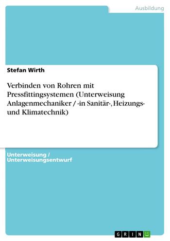 Unterweisung / Unterweisungsentwurf aus dem Jahr 2009 im Fachbereich AdA Handwerk / Produktion / Gewerbe - Installateur, Note: 1, , Sprache: Deutsch, Abstract: Der Auszubildende kann nach der Unterweisung fachgerecht und ordnungsgemäß und unter Beachtung der UVV die Pressmaschine richtig bedienen und Pressverbindungen bei verschiedenen Rohrsystemen selbstständig herstellen. Sehr schönes Unterweisungsthema. Einfacher Aufbau und sehr einfach nachzumachen. Damit ist der Erfolg gesichert.