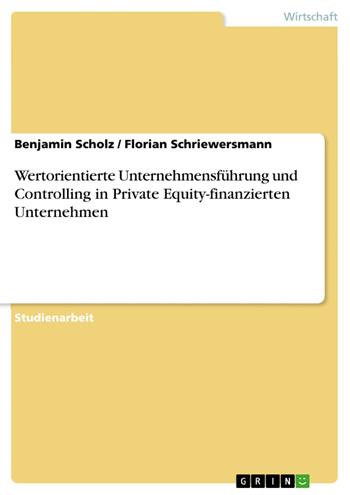 Studienarbeit aus dem Jahr 2009 im Fachbereich BWL - Controlling, Note: 1,0, SRH Fachhochschule Hamm, Veranstaltung: Controlling, Sprache: Deutsch, Abstract: In den letzten Jahren hat die Finanzierung über Private Equity (PE) in Deutschland durch eine zunehmende Globalisierung ein rasantes Wachstum erlebt. Unternehmen haben in Zeiten der Finanzkrise und dem Zusammenbruch der Bank- und Kreditwelt große Probleme ihre Kapitaldecke aufrecht zu erhalten. Der Zugang zu Finanzierungsformen wie Bankkrediten hat sich tendenziell verschlechtert. (vgl. Rürup 2005, 455). Es wird nach alternativen Finanzierungsformen gesucht. Private Equity spielt hierbei eine große Rolle. Im Dezember 1999 öffnete Gerhard Schröder durch die große Steuerreform die deutschen Märkte uneingeschränkt für ausländische Investoren. Diese mussten nun keine Steuern mehr auf Erlöse aus Unternehmensverkäufen zahlen. Unternehmen, die nun sicher vor schnellen Übernahmen sein wollten, mussten möglichst effizient arbeiten und eine gute Eigenkapitalstruktur aufweisen. Der bis heute anhaltende Erfolgsdruck auf die Unternehmen, auch durch Fortschritt im Informations- und Technologiebereich, bewirkte ein Umdenken. Das Management einer Unternehmung muss heutzutage höchst effizient arbeiten. Eine mögliche Alternative zur Verbesserung der Unternehmensstruktur in Verbindung mit der Sicherung der Kaptaldecke bietet PE. Diese Art der Finanzierung ist aufgrund seiner Beschaffenheit eine Symbiose aus Kabitalbereitstellung und Controlling des Portfoliounternehmens. Da die Investoren natürlich auch eine angemessene Rendite erwarten wird dieses Controlling wertorientiert ausgerichtet. Abgesehen von einzelnen Ausnahmen agieren Private Equity Gesellschaften (PEG) heutzutage als Unterstützer ihrer Portfoliounternehmen, um die nachhaltige Existenz und den Erfolg zu sichern. Die nachhaltige Erfolgssicherung und Wertsteigerung wird partnerschaftlich und gemeinsam umgesetzt. Das Berichtwesen und die Ablauforganisation werden standardisiert und durch erfahrene Manager der PEG optimiert. Diese Arbeit beschreibt verschiedene Formen der Finanzierung über Private Equity Gesellschaften, geht auf den allgemeinen Ansatz des wertorientierten Controlling ein und zeigt auf, wie die Zusammenarbeit eines Private Equity Fonds und des jeweiligen Portfoliounternehmens bei richtiger und konsequenter Umsetzung der Vorgaben einen enormen Vorteil für beide Partner erzeugen kann. Im letzten Kapital wird der Einsatz von Kennzahlen des werteorientierten Controllings, wie Cash Value Added (CVA) oder Weight Average Cost of Capital (WACC), erläutert.