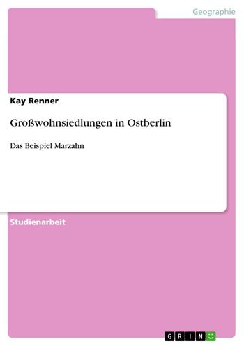 Studienarbeit aus dem Jahr 2009 im Fachbereich Geowissenschaften / Geographie - Bevölkerungsgeographie, Stadt- u. Raumplanung, Note: 1,0, Christian-Albrechts-Universität Kiel (Institut für Geographie), Veranstaltung: Stadtentwicklung Berlin - Übung für Fortgeschrittene, Sprache: Deutsch, Abstract: Die Großwohnsiedlung Marzahn war eines der größten Bauvorhaben der ehemaligen DDR. Fertig gestellt wurde sie Ende der 80’er Jahre in Stadtrandlage Ost-Berlins und bildete nach Abschluss des Bauvorhabens einen neuen eigenen Stadtbezirk. Bis heute ist sie in Verbindung mit Hellersdorf die größte zusammenhängende Plattenbausiedlung Europas (Schwenk, 2002, S.301). Sozioökonomische Disparitäten kommen aufgrund der vorliegenden Monostrukturen besonders zum Tragen und erfordern planerische Maßnahmen. Ziel der Arbeit ist es, einen umfassenden Überblick über die Stadtteilentwicklung der Großwohnsiedlung Marzahn-Hellersdorf zu geben. Die Rahmenbedingungen und Erfordernisse des weiteren Stadtumbaus werden beleuchtet sowie aktuelle Probleme und Maßnahmen der Quartiersaufwertung benannt (Bezirksamt Marzahn-Hellersdorf, 2007, S.4).