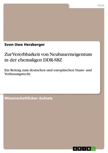 Wissenschaftlicher Aufsatz aus dem Jahr 2006 im Fachbereich Jura - Europarecht, Völkerrecht, Internationales Privatrecht, Note: 1,0, Hochschule für Technik und Wirtschaft Berlin, Veranstaltung: Deutsches- und Europäisches Staats- und Verfassungsrecht, Sprache: Deutsch, Abstract: „Die Wiedervereinigung ist vollbracht, wenn der letzte Ostdeutsche aus dem Grundbuch gelöscht wurde.“ (Uwe Steimle – Kabarettist, Schauspieler und Kommissar Jens Hinrichs im Polizeiruf 110) Mit dem Beitrag soll anhand eines rechtsgeschichtlichen Überblickes die Frage gestellt werden, ob das aus der Bodenreform in der SBZ/DDR hervorgegangene Neubauerneigentum jederzeit vererbbar war und, ob die Vorschriften zur Abwicklung der Bodenreform, Art. 233 §§ 11 bis 16 EGBGB rechtlich geboten waren.