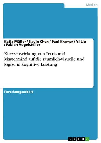 Forschungsarbeit aus dem Jahr 2009 im Fachbereich Medien / Kommunikation - Methoden und Forschungslogik, Note: 1,7, Bauhaus-Universität Weimar (Medien), Veranstaltung: Forschungsmethoden (Wahrnehmung 2), Sprache: Deutsch, Abstract: Untersucht wurde die Auswirkung der Spiele Tetris und Mastermind auf die Leistung im nicht-verbalen räumlich-visuellen und logischen Teil des Stanford-Binet-IQ-Tests. 33 Studenten und wissenschaftliche Mitarbeiter spielten zwischen zwei Testsets 30 Minuten lang eines der Spiele. Beide Gruppen verbesserten sich im zweiten Test hinsichtlich der gelösten Aufgaben und der Bearbeitungsgeschwindigkeit. Die Mastermind-Gruppe verbesserte ihren Fehlerquotienten im logischen Aufgabenteil am stärksten, von 87% auf 99%. Die Tetris-Gruppe bearbeitete die Aufgaben im Vergleich schneller und verbesserte sich im räumlich-visuellen Aufgabenteil am stärksten, von 82,8% auf 87,8%. Auf die Gesamtzahl der bearbeiteten und richtigen Aufgaben bezogen unterschieden sich die Gruppen im Vortest stark und glichen sich im Nachtest in ihrer Leistung an. Die Mastermind-Gruppe lös- te dabei insgesamt mehr Aufgaben. Unter den gegebenen Bedingungen wurden bedeutende Unterschiede in der Treatment-Auswirkung festgestellt. Die Nullhypothese wird jedoch wegen zahlreichen möglichen Störvariablen in der Testsituation beibehalten.