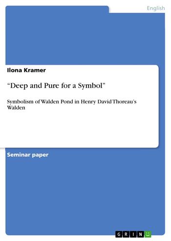 Seminar paper from the year 2007 in the subject English Language and Literature Studies - Literature, grade: 1,00, University of Heidelberg, course: Henry David Thoreau, language: English, abstract: I. Introduction In the chapter “Where I lived and What I lived for”, Thoreau explains what he wanted to achieve by his experiment: I went to the woods because I wished to live deliberately, to front only the essential facts of life, and see if I could learn what it had to teach, and not, when I came to die, discover that I had not lived. I did not wish to live what was not life, living is so dear; not did I wish to practise resignation, unless it was quite necessary. I wanted to live deep and such out all the marrow of life […] to drive life into a corner, and reduce it to its lowest terms, and, if it proved to be mean, why then to get the whole and genuine meanness of it, and publish its meanness to the world; or if it were sublime, to know it by experience, and be able to give a true account of it […]. For most men, it appears to me, are in a strange uncertainty about it, whether it is of the devil or of God […]. (W, 72) This passage demonstrates Thoreau’s desire to establish a relationship to the world around him. Feeling that, like most people, he lived “what was not life”, he moves to Walden Pond in order to find out for himself what life actually was. He feels that nature can reveal truths and meanings to him and thus help him to overcome the “strange uncertainty” about the character of the world and of his own life. But if nature seemed to “communicate” with man, how could he make sure to understand its message? ... In order to ‘translate’ his experience to his readers, Thoreau uses natural imagery in a highly symbolic way. ... In the book we find the pond described in a very detailed way: its size, the depth, the flora and fauna. The meanings of these descriptions are various and at the end this small body of water comes to symbolize almost everything of Thoreau’s spiritual, philosophical and personal message. In order to demonstrate this, it is necessary to look closely at what Thoreau has to say about the pond and his relationship to it. Because water, the element of the pond, is a powerful symbol in itself, I will begin by a short introduction of a universal symbolism of water and examine how this symbolism is applied in Walden. I will then proceed to a more specific analysis of the pond imaginary, which is particularly concentrated in the chapters “The Ponds” and “The Pond in Winter” and “Spring”. [...]