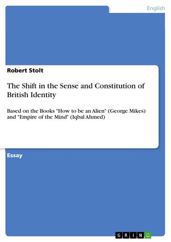 Essay from the year 2009 in the subject English Language and Literature Studies - Culture and Applied Geography, grade: 1,4, University of St Andrews, language: English, abstract: In the course of this essay the two books, How to be an alien by George Mikes and Empire of the Mind by Iqbal Ahmed, shall be carefully examined by placing an emphasis on how the sense of the British identity has changed since the end of the British Empire. The primary focus lies on the imperial and industrial decline, thus, due to the scope of this essay, other core issues that co-form the British identity, such as multiculturalism will not be considered. Mikes’ depictions are based on the English society of the beginning of the twentieth century, a time that was directly influenced by the decline of the empire. Ahmed’s experiences, on the other hand, are of a much more recent nature. This essay, therefore, presents the link between Britain losing its empire and the modern Britain of today. Firstly, the effects of the end of the empire will be examined by presenting two opposing post-war theories, which will then be applied to Mikes’ How to be an alien. In order to picture the impact of the end of the empire, the role of cricket shall be investigated as well as the shift in social structures. Furthermore, the industrial decline, as a ‘fellow traveller’ of the imperial decline, is analysed by means of Ahmed’s Empire of the mind. The last part of this essay is dedicated to tracing the remnants of the empire on the basis of Ahmed’s journey.