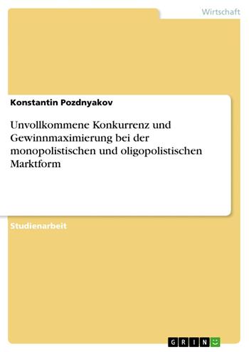 Unvollkommene Konkurrenz und Gewinnmaximierung bei der monopolistischen und oligopolistischen Marktform (eBook)