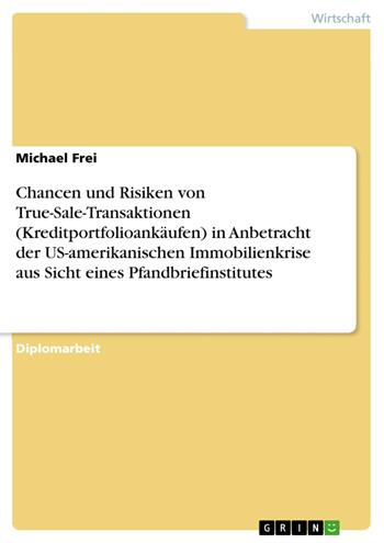 Chancen und Risiken von True-Sale-Transaktionen (Kreditportfolioankäufen) in Anbetracht der US-amerikanischen Immobilienkrise aus Sicht eines Pfandbriefinstitutes (eBook)