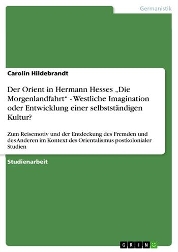 Studienarbeit aus dem Jahr 2009 im Fachbereich Germanistik - Komparatistik, Vergleichende Literaturwissenschaft, Note: 1,9, Justus-Liebig-Universität Gießen (Germanistik), Veranstaltung: Postcolonial Studies und Tendenzen in der aktuellen deutschsprachigen Gegenwartsliteratur, Sprache: Deutsch, Abstract: Ich möchte mich in dieser Arbeit mit dem Orientbild in Hermann Hesses „Die Morgenlandfahrt“ beschäftigen und klären, ob es sich dabei um die westliche Imagination eines solchen handelt oder ob Hesse einen, wenn auch fiktiven, selbstständig kulturellen Orient entwickelt. Ich werde mich im Zuge dessen insbesondere mit dem Reisemotiv und der Entdeckung des Fremden in der Erzählung beschäftigen. Dabei werde ich insbesondere auf den Zusammenhang zur Orientalismusdebatte innerhalb postkolonialer Studien eingehen und versuchen, die Bedeutung des Romans für die Beziehung von Ost und West (auf literarischer wie gesellschaftlicher Ebene) herauszuarbeiten. Aus drei Gründen entschied ich mich für eine Analyse von „Die Morgenlandfahrt“ im Kontext postkolonialer Literatur: Erstens zählt Hermann Hesse zu denjenigen deutschen Autoren, die sich intensiv mit anderen Kulturen auseinandersetzten und nicht alles, was nicht national war, ablehnten. Zweitens finde ich es interessant ein anderes Werk als den Vorzeigeroman „Siddharta“ in Bezug auf den Aspekt des Östlichen und dessen Bild im Westen zu untersuchen und drittens treffen Hesses Schreib- und Denkweisen meinen persönlichen Geschmack, wobei ich zugeben muss, dass ich seine Romane bis zu Beginn des Seminars Postcolonial Studies und Tendenzen in der deutschsprachigen Gegenwartsliteratur nicht unter dem Blickwinkel betrachtet habe, den ich in dieser Arbeit verfolgen werde. Nach einer kurzen Biographie des Autors Hermann Hesse und einer Zusammenfassung der inhaltlichen Ereignisse in „Die Morgenlandfahrt“ werde ich unter Punkt 3. 1 theoretische Grundlagen zum Orientalismus darstellen und mich dabei insbesondere auf die Ausführungen von Edward W. Said beziehen, der innerhalb dieser Forschungsrichtung die bisher bedeutendsten Ideen lieferte. Im Punkt 3.2 werde ich dann „Die Morgenlandfahrt“ auf Reisemotive und die Entdeckung des Fremden und des Anderen untersuchen, wobei ich mich auf das erste Kapitel der Erzählung beschränke, da hier die eigentliche Pilgerreise dargestellt wird. Anschließend möchte ich unter Punkt 3.3 die beiden vorher genannten Punkte miteinander verknüpfen, also darauf eingehen, inwiefern Hesses Roman mit den Ansätzen des Orientalismus übereinstimmt oder davon abweicht und welche Bedeutung dies für postkoloniale Studien deutschsprachiger Literatur hat.