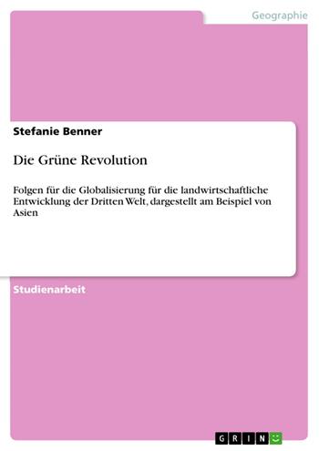 Studienarbeit aus dem Jahr 2010 im Fachbereich Geowissenschaften / Geographie - Wirtschaftsgeographie, Note: 1,7, Johannes Gutenberg-Universität Mainz (Geographisches Institut), Veranstaltung: Hauptseminar, Sprache: Deutsch, Abstract: In den 60er Jahren musste in Teilen Asiens eine gewaltige Hungersnot befürchtet werden, da keine weitere Flächenausdehnung in der Landwirtschaft möglich war und der Bevölkerungsdruck immer größer wurde. Eine der Katastrophe konnte nur durch höhere Erträge abgewendet werden. Die Grüne Revolution bot diese Möglichkeit. Im Folgenden sollen Maßnahmen und Bedingungen der Umsetzung erläutert werden, und welche begleitenden positiven und negativen Ergebnisse die Revolution mit sich brachte. Exemplarisch dienen die asiatischen Länder Indien, mit dem Cauvery-Delta und Indonesien. Es stellt sich die Frage, wie sich die Grüne Revolution auswirkte und wem sie zugute kam. Außerdem wird ein Augenmerk auf den entstanden Problemen liegen, denn es muss untersucht werden, ob sich Schwierigkeiten in sozialer Hinsicht verschärften und ob darüber hinaus zusätzliche Probleme entstanden.